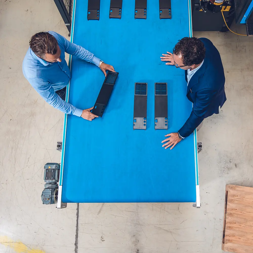 SELL Plastics streeft naar een sterke balans tussen mens, machine, techniek en automatisering. Want zo garanderen wij een efficiƫnt, flexibel en energiezuinig productieproces. Daarom werken we met energiezuinige, up-to-date machines en een digitale, centrale aanvoering van onze grondstoffen. Inclusief een schone werkplek en grote capaciteit.